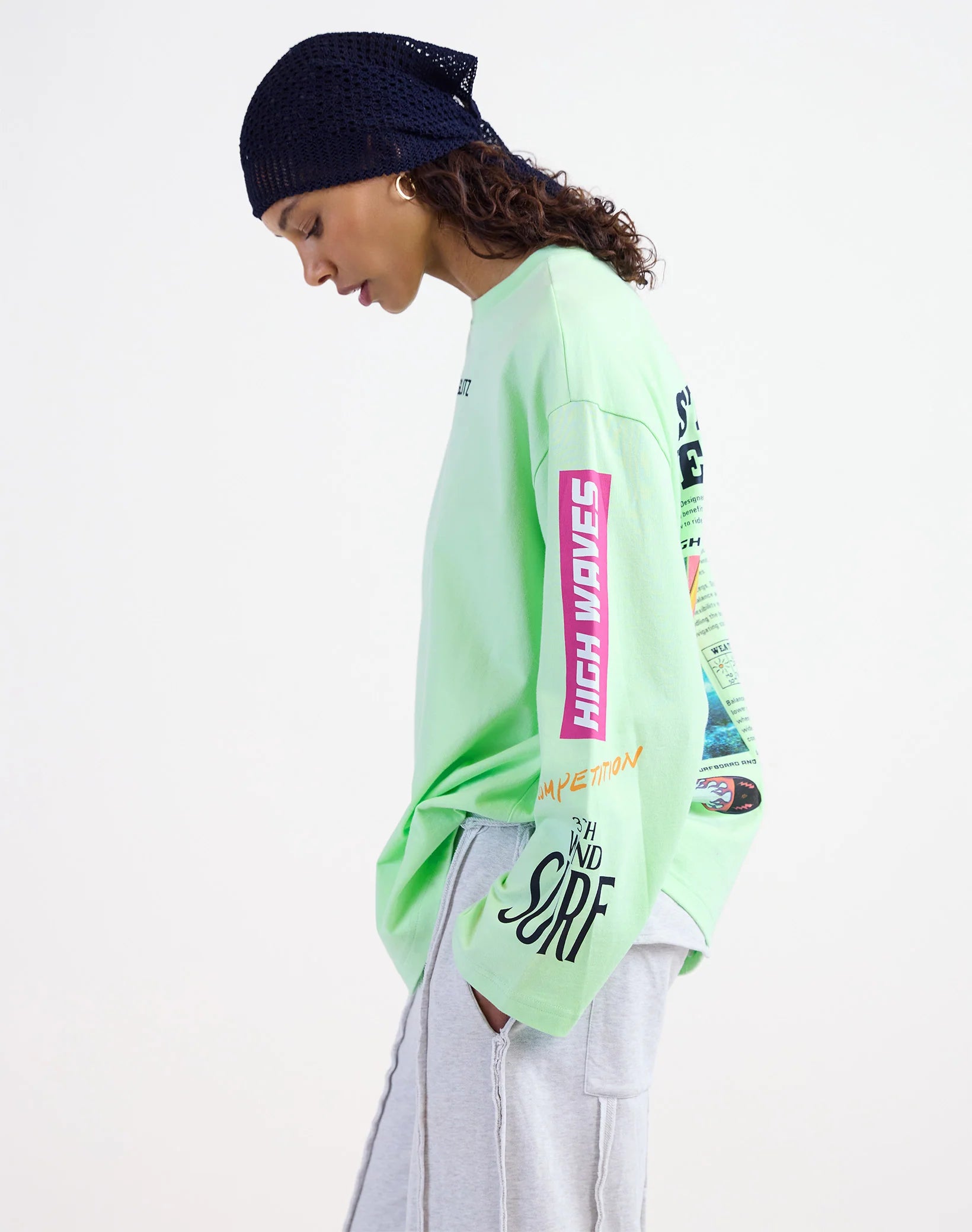 This oversized mint green skate T-shirt features a bold print on the back for a cool, laid-back look